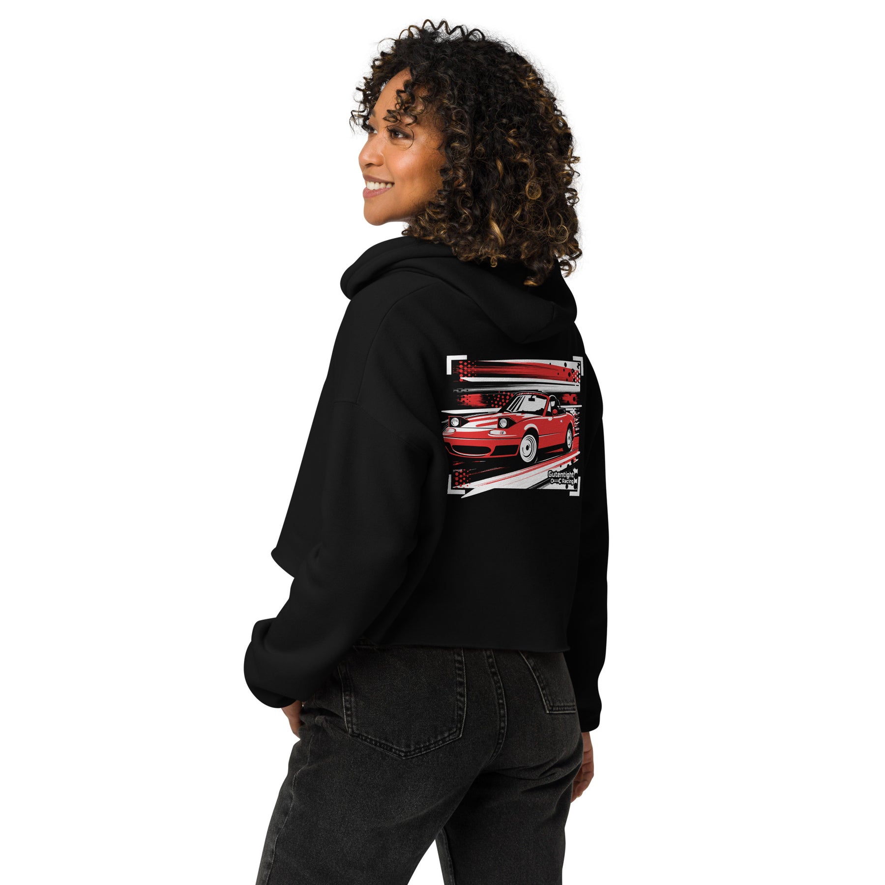 The Red Miata Crop Hoodie is pure classic energy — bold, simple, timeless. With the iconic red roadster printed on the back and a clean front, it’s built for the ones who appreciate the original lightweight legend. Midweight fleece, cropped cut, and that unmistakable Gutentight touch.