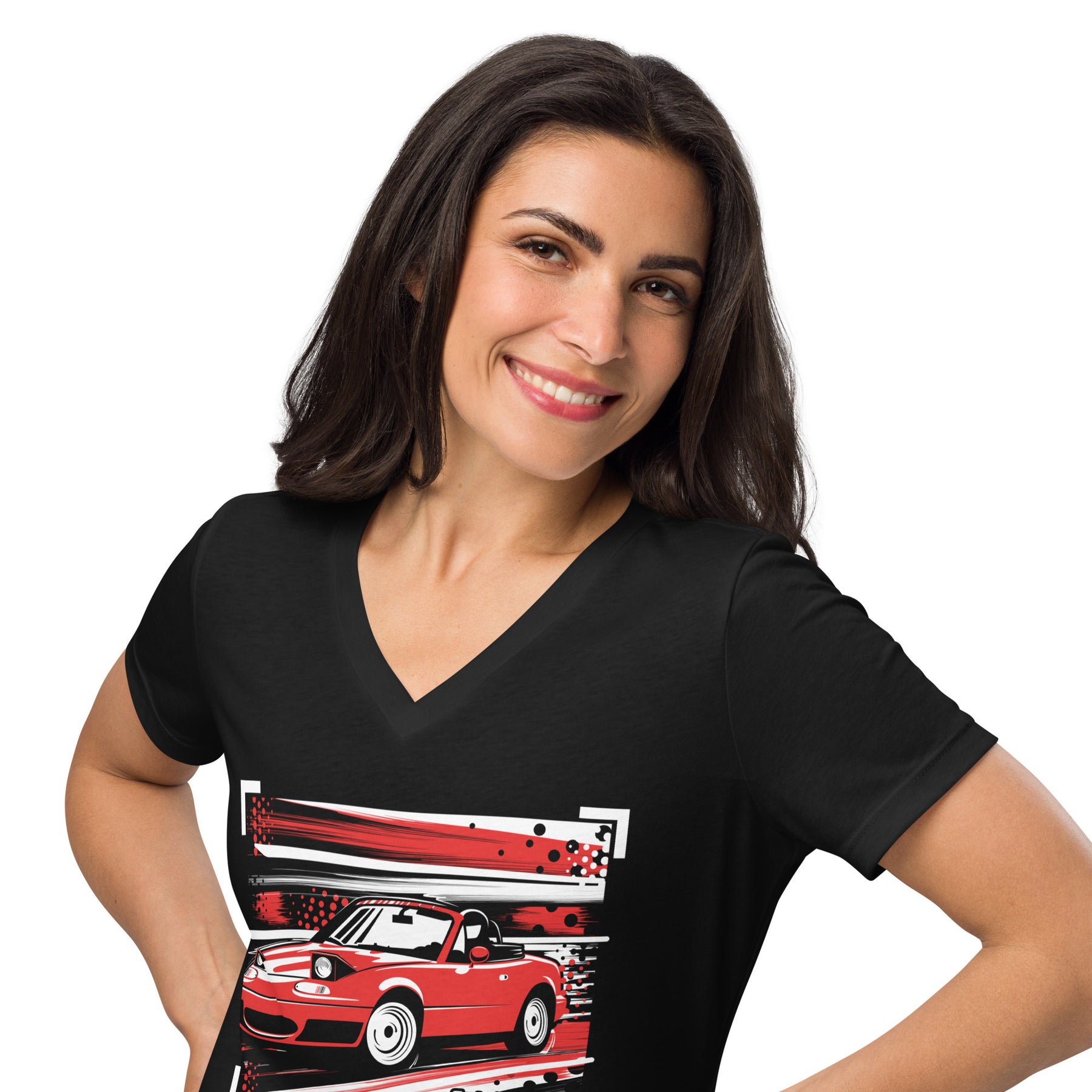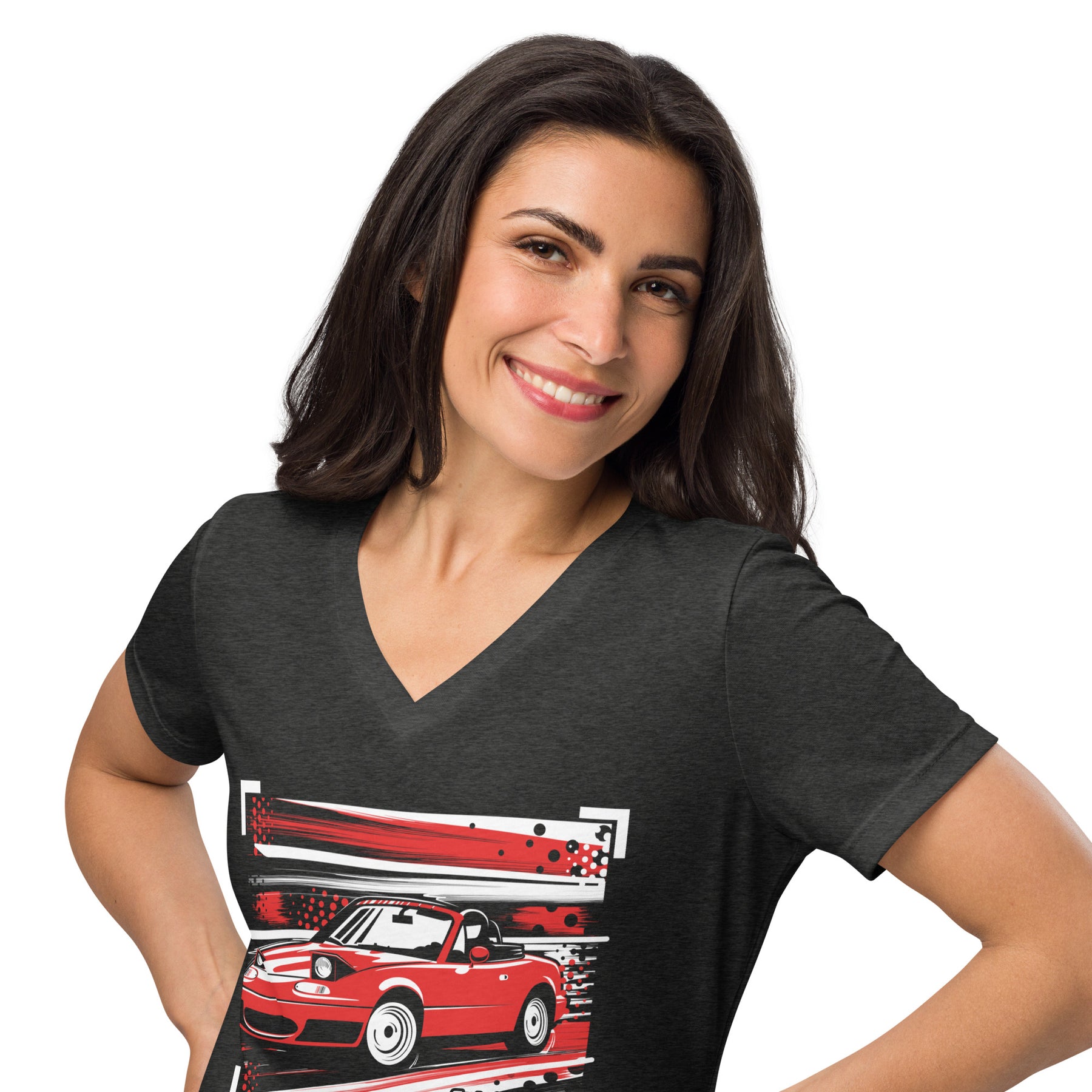 We took the classic Miata look and built it for women who drive — not just ride along. Soft V-neck, tailored cut, and the OG red roadster printed loud and proud. Because “unisex” never fits right, but this one does. Gutentight Racing approved.